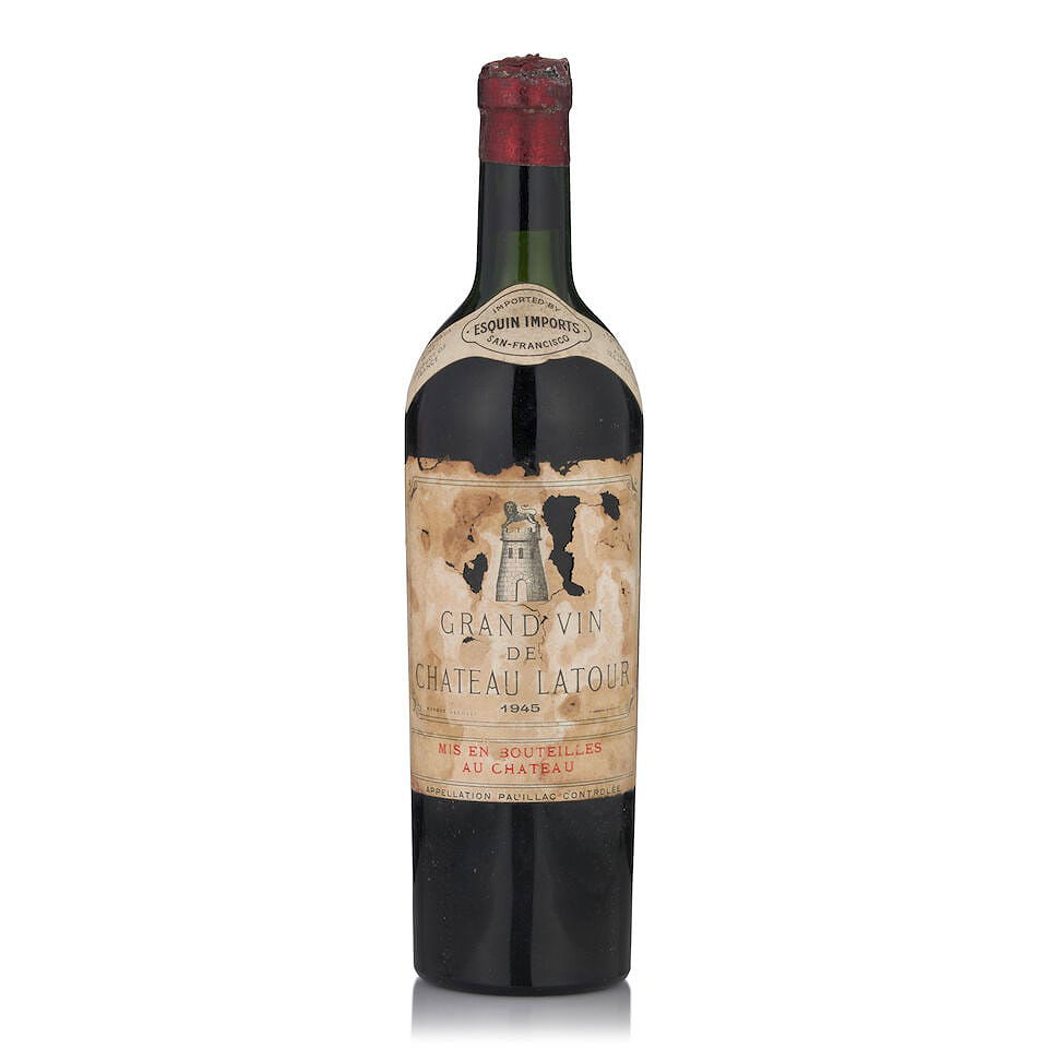 Chateau Latour, 1945 (1 bottle, 750ml) Region: Pauillac Fill Level: just below top shoulder Capsule: worn, corroded, bin soiled, small losses Packaging: stained, faded, losses Footnotes: Bordeaux, Left Bank This lot is subject to the following lot symbols: • • Zero rated for tax, no tax will be added to the Hammer Price or the