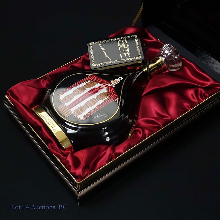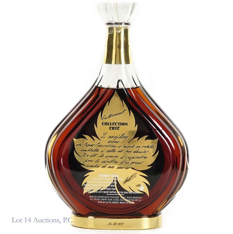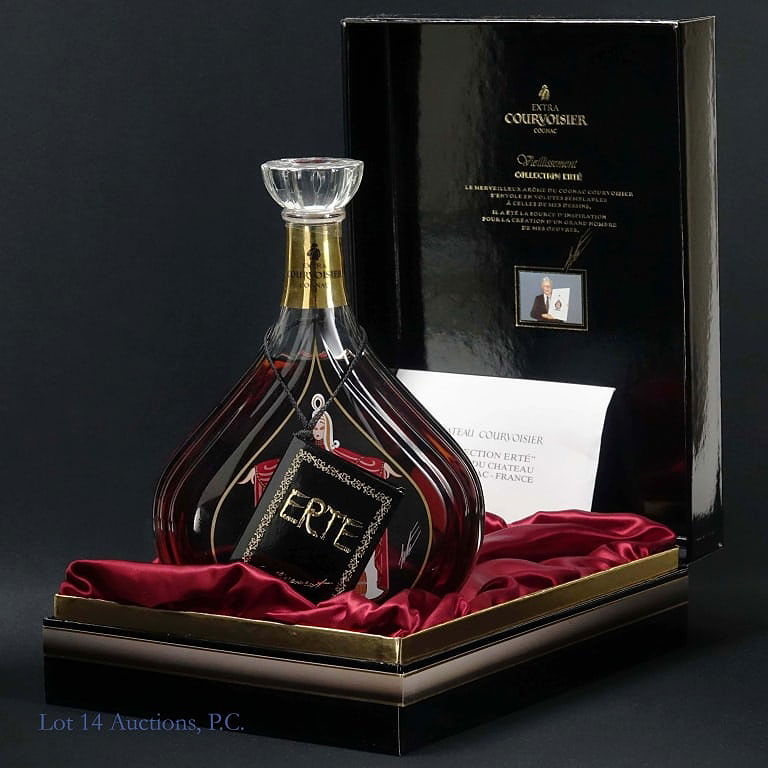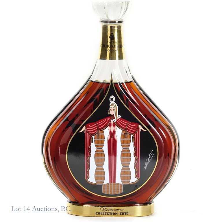 Courvoisier Collection Erte No. 4 Vieillissement Extra Cognac, 80 Proof, 750 ml, 4th Design Bottle #B Silk screening design and hand painted pigments including 24 carat gold. See photos for condition details.