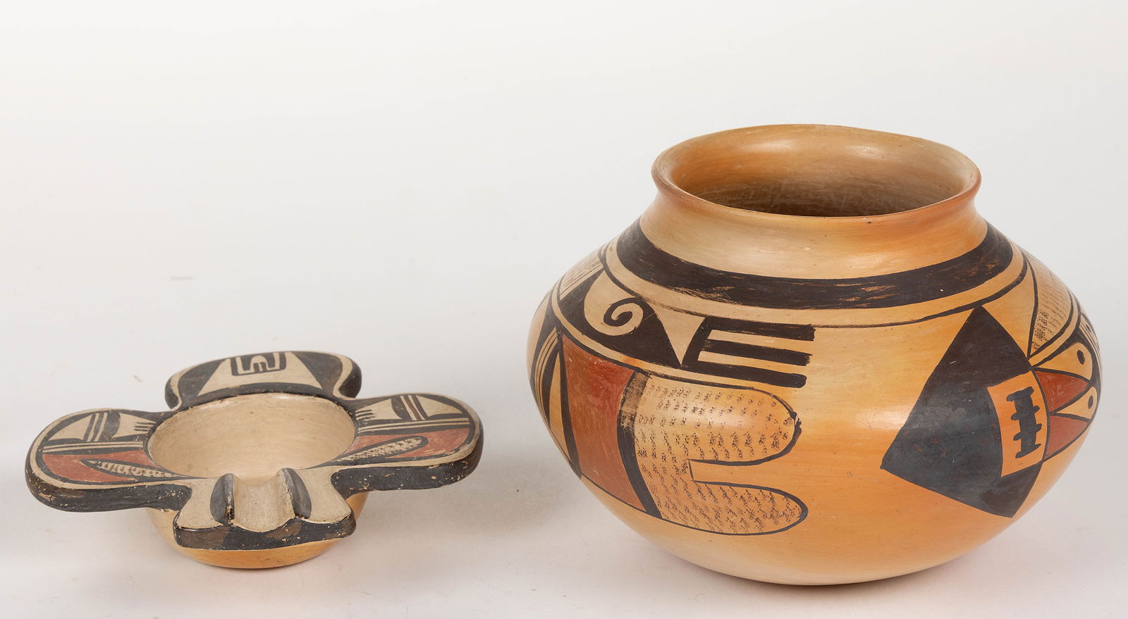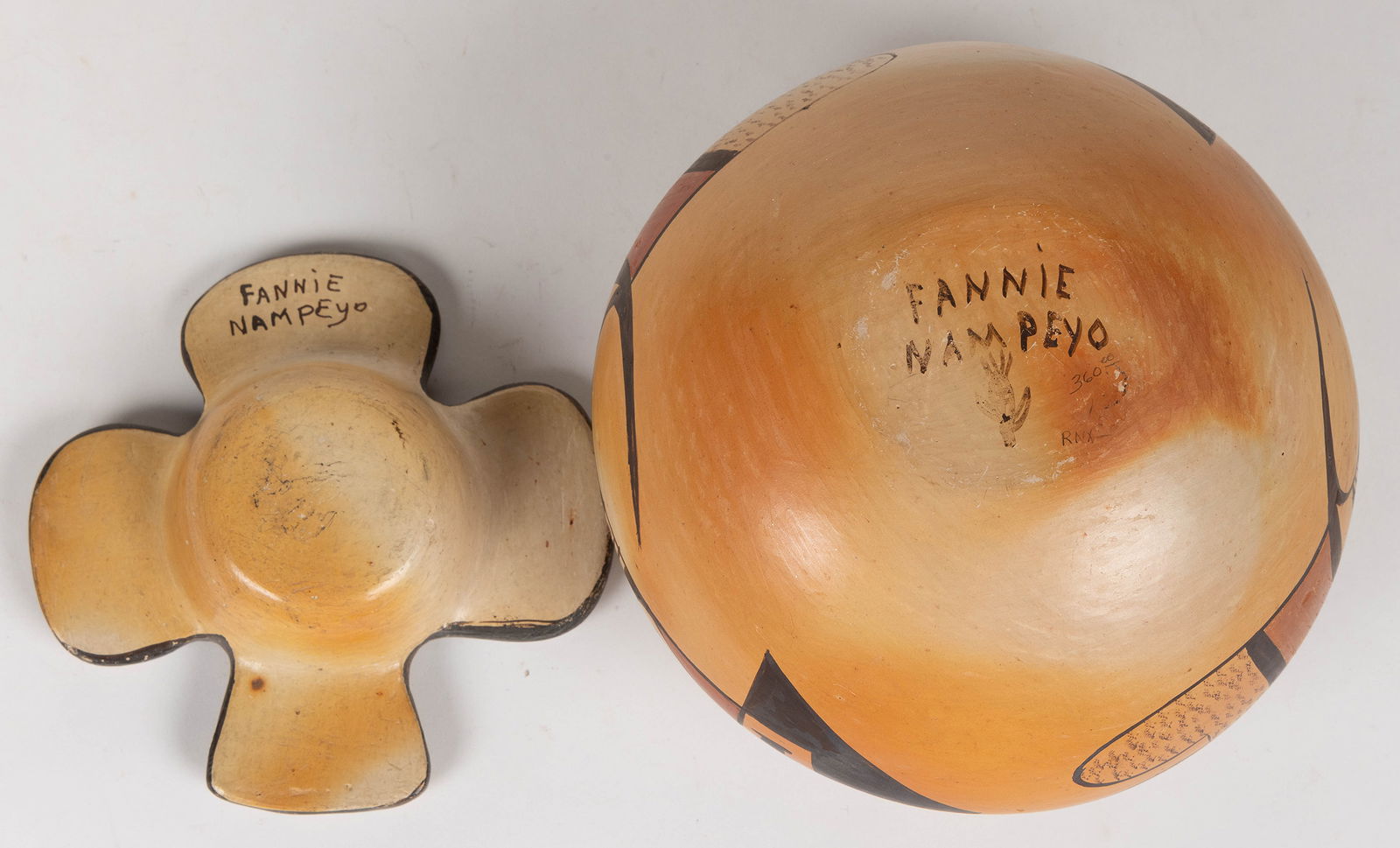 SIGNED FANNIE NAMPEYO (1900-1987) NATIVE AMERICAN HOPI-TEWA POTTERY ARTICLES, LOT OF TWO